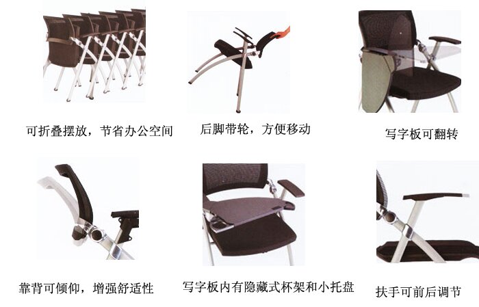 此款培訓椅是目前中國獨一無二的培訓椅,功能強大,設計簡約、大氣,用途廣泛,適用于高級行政辦公室做辦公椅會議椅使用